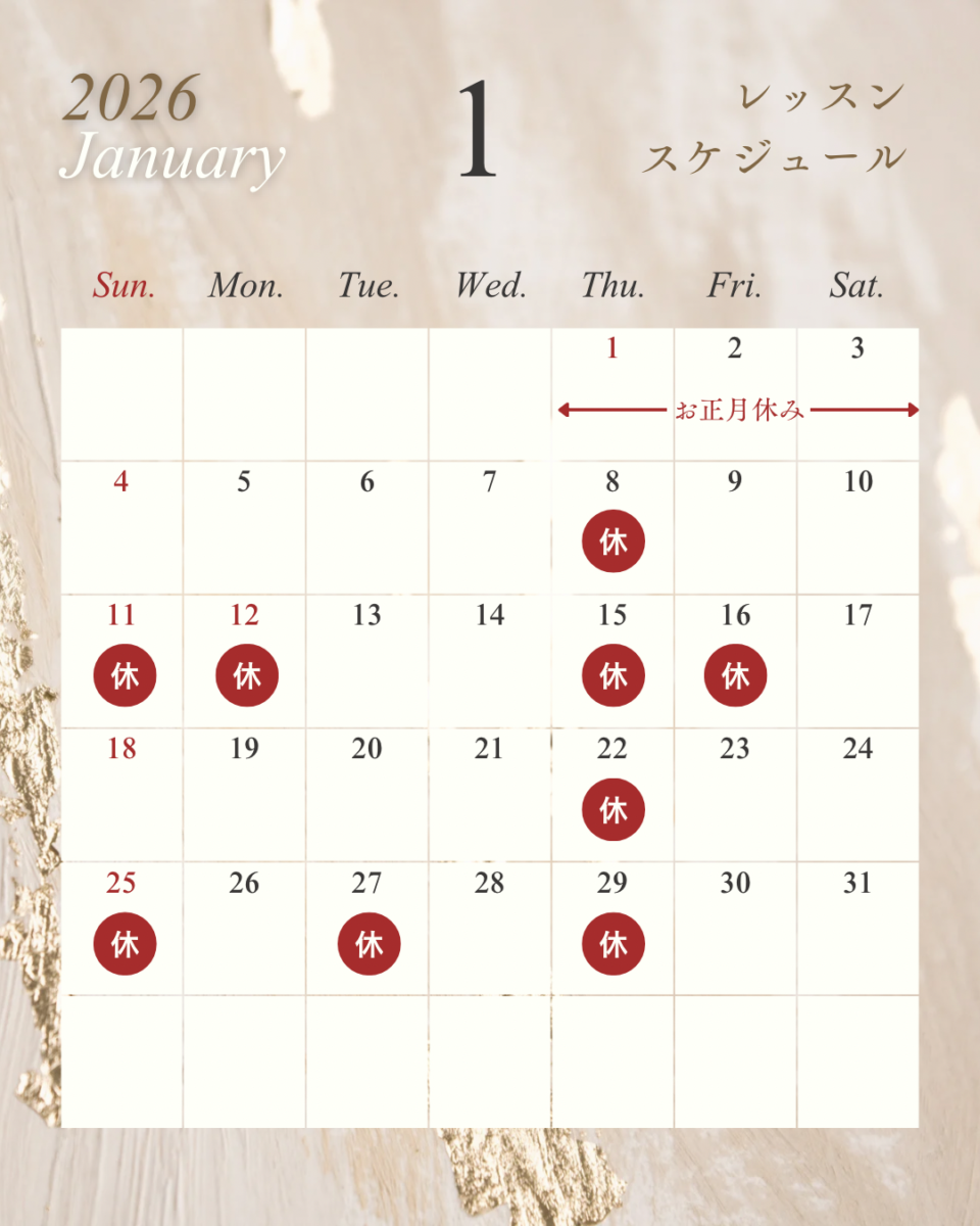 毎月20日前後に、翌月のレッスン日を掲載いたします。